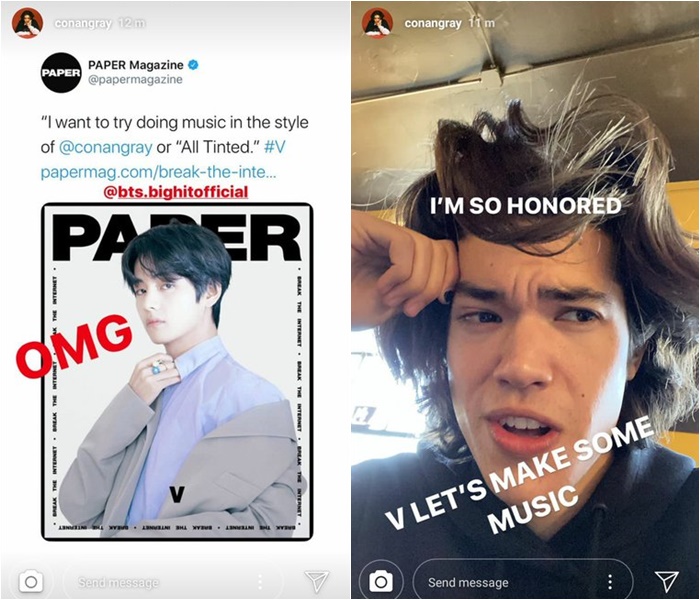 そんなコナンには音楽界も反応しており、トロイ・シヴァン、The 1975のマシュー・ヒーリー、パニック・アット・ザ・ディスコのブレンドン・ユーリーなどがコナンの楽曲を絶賛。BTSのキム・テヒョンことVにいたっては、Vが「コナン・グレイの音楽スタイルに挑戦してみたいね」と米Paper Magazineでコメントし、コナンも「一緒に音楽を作ろう!」とSNSで語りと、まさに両想い。